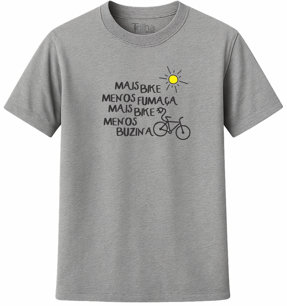 A Camiseta Masculina Mais Bike, Menos Fumaça é para quem acredita que o pedal é o caminho para um futuro mais limpo e saudável. Com uma pegada cicloativista e urbana, essa estampa traduz a atitude de quem escolhe a bicicleta como meio de transporte, deixando de lado o trânsito e a poluição.